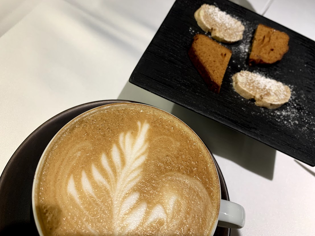 カプチーノと小菓子。 今日もたっぷり美味しくいただきました。 |