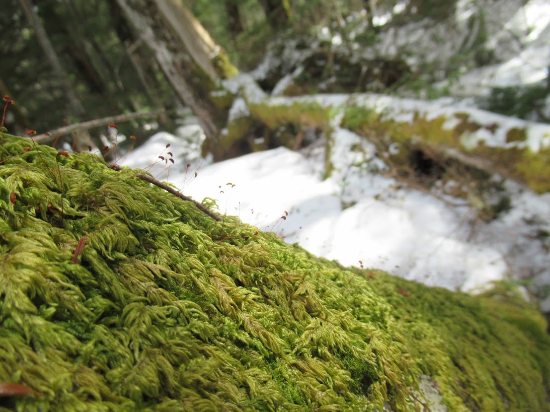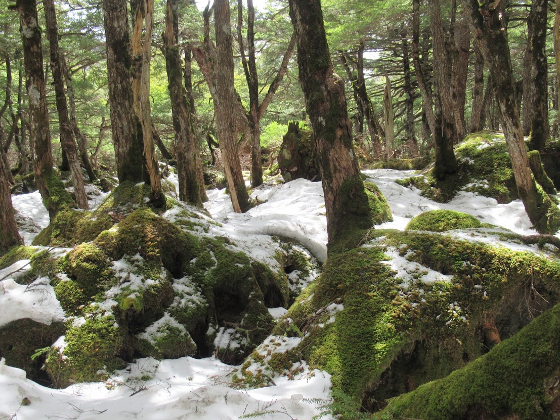 苔で有名な池なのに、まだまだ雪が残っていて、「もののけ姫」の世界は見られず… |