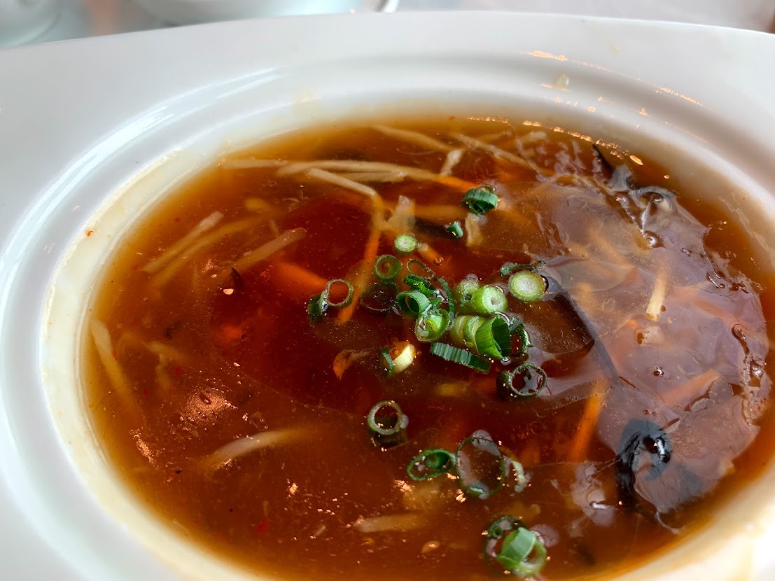 麗穂の点心師が作る点心三種に続いてフカヒレ入り上海風サンラータン。 おいしかった。 |