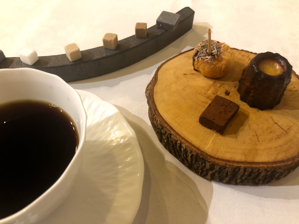 コーヒーと小菓子。 カヌレがおいしかったです。 |