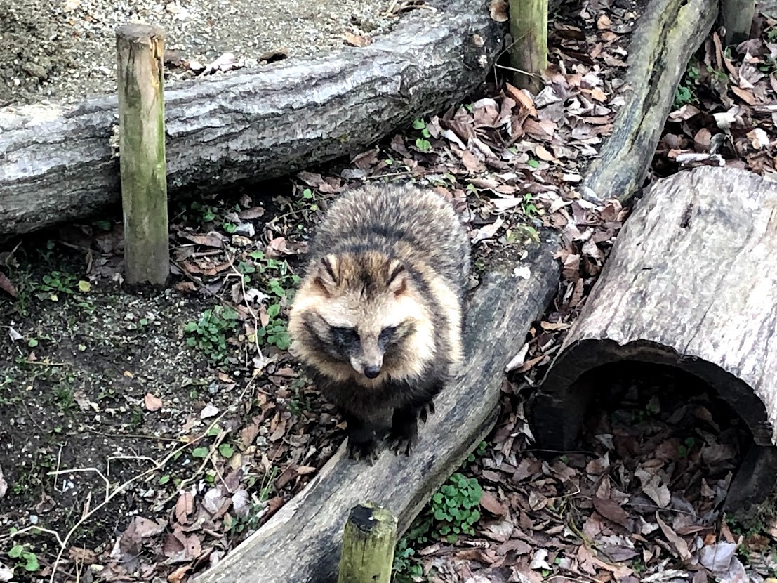 「平和公園」から歩いて「東山動植物園」に到着。 狸の山は上からのぞき込む展示方法です。上からみると一面低木が茂っていて、 狸の姿はその木の下に。時々出てきてくれるのを待ちます。木の下からでてスロープになった遊び場まで出てきてくれましたー |