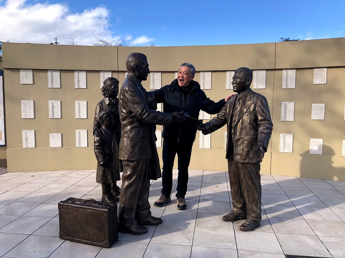 学校の前にある広場。 熱田神宮まであるときにはここで最後の休憩をします。 杉原千畝さんが命のビザを発給しているところに居合わせました。 |