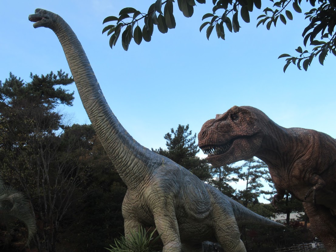 恐竜発見!!公園には11体も恐竜がいるんだって。でっかくて迫力あります。 |