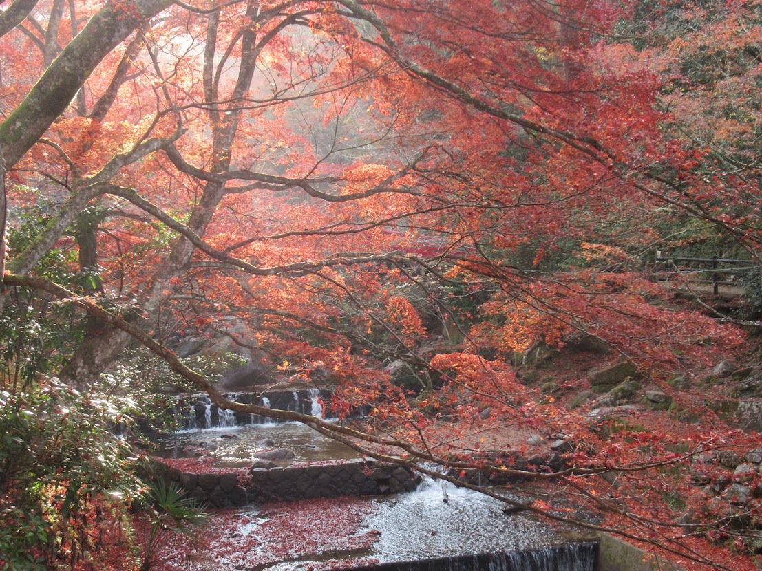 川に沿って「瀬戸大滝」まで歩きます。 あれー、けっこう葉っぱ落ちてるなー |