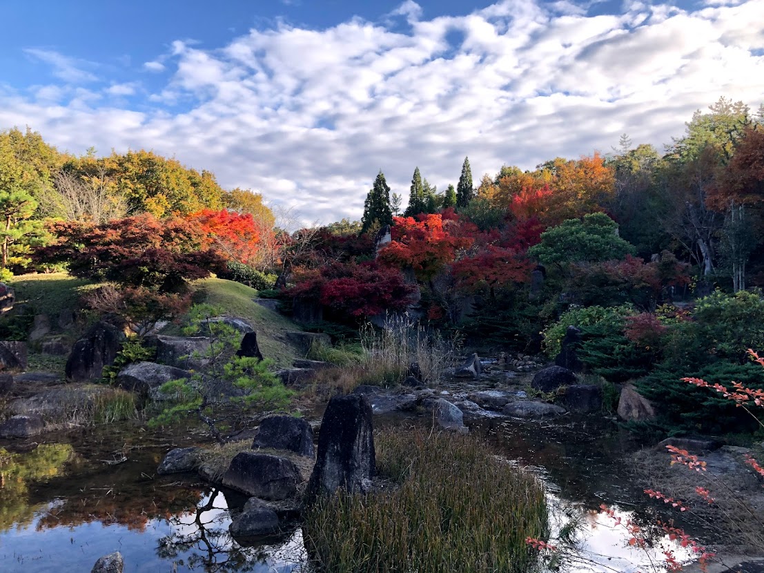 渓流が流れて広い場所に出てきたところ。 愛知万博のときに整備された日本庭園です。当時は木が若かったけれど、15年経っていい感じになりました。 こんな素敵な日本庭園を独り占めできます(しかも無料!) |