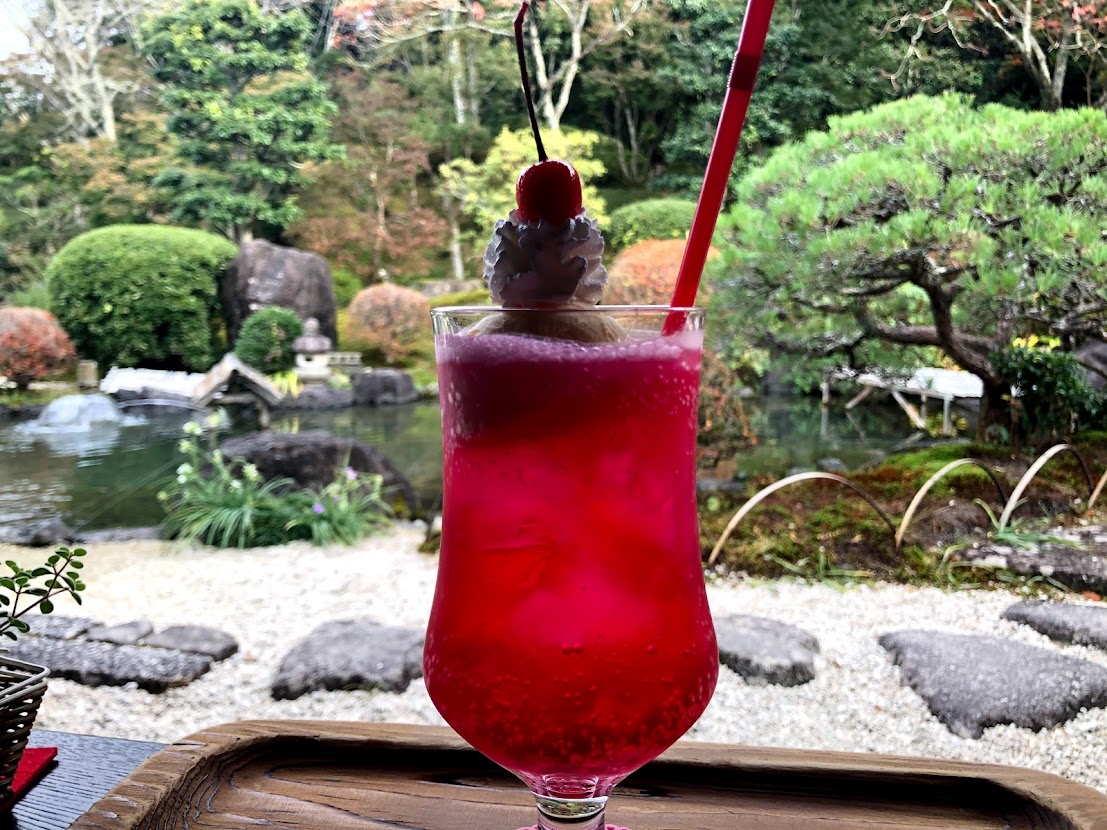 「書院」でスイーツを。 山登りを頑張ったご褒美。 お庭をみながらゆっくりできるいいところです。 |