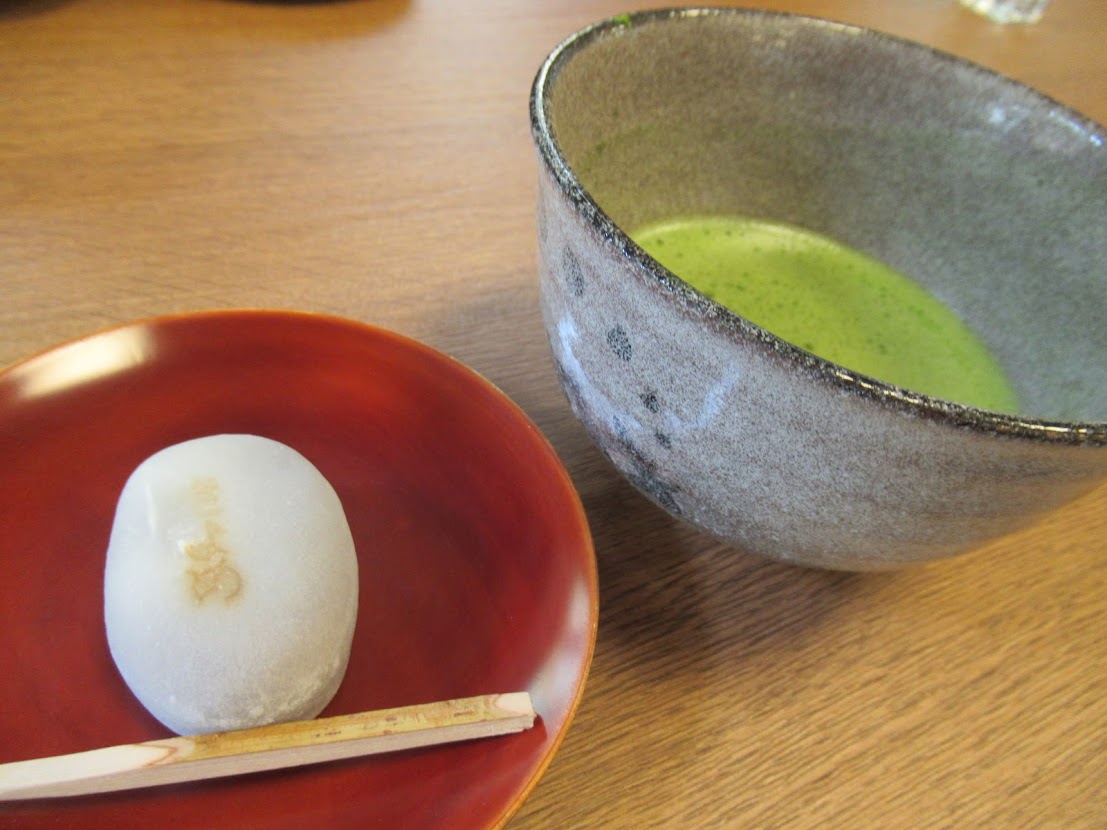 まずは「きよめ餅」をいただきます。 「きよめ餅」は江戸時代、熱田神宮にお参りする人の休憩所の茶屋で出されたのが始まりです。とろけるように柔らかい羽二重餅でこしあんがくるまれています。優しい甘さでおいしいです。 |