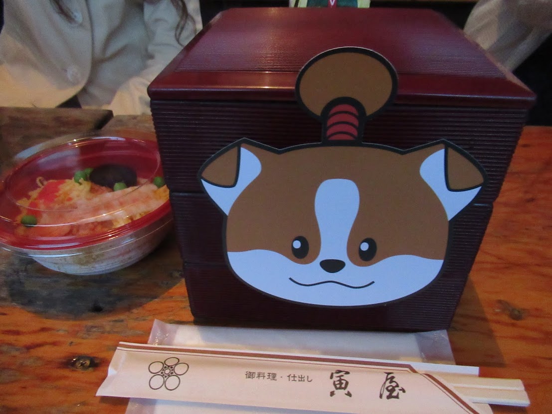 お弁当についていた犬山のゆるキャラ「わん丸くん」。 いくつになっても中学生時代ののりで遊べるのが楽しいねー |