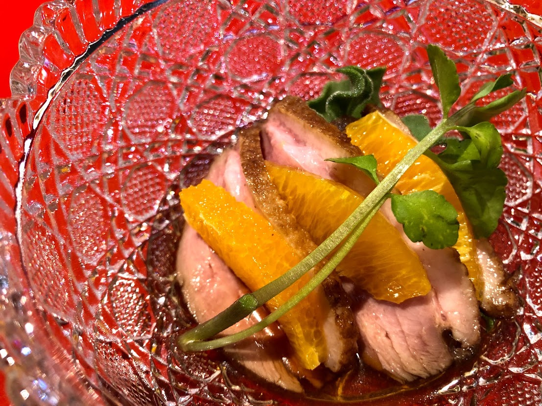 鴨のロースト。 ここはお肉料理が出てきて、ボリューム満点です。 |