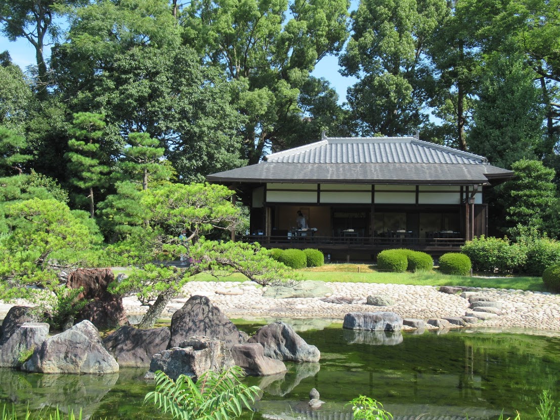 京都御所の緑を借景にした池を中心とした庭園です。 いろいろ細かく作り込まれていて、誰が気づく?って言うような彫りが小さく入ってたりします。小さすぎてほとんど自己満足の世界。 海外からのお客さまはそれをどう見るのかなぁ。 |