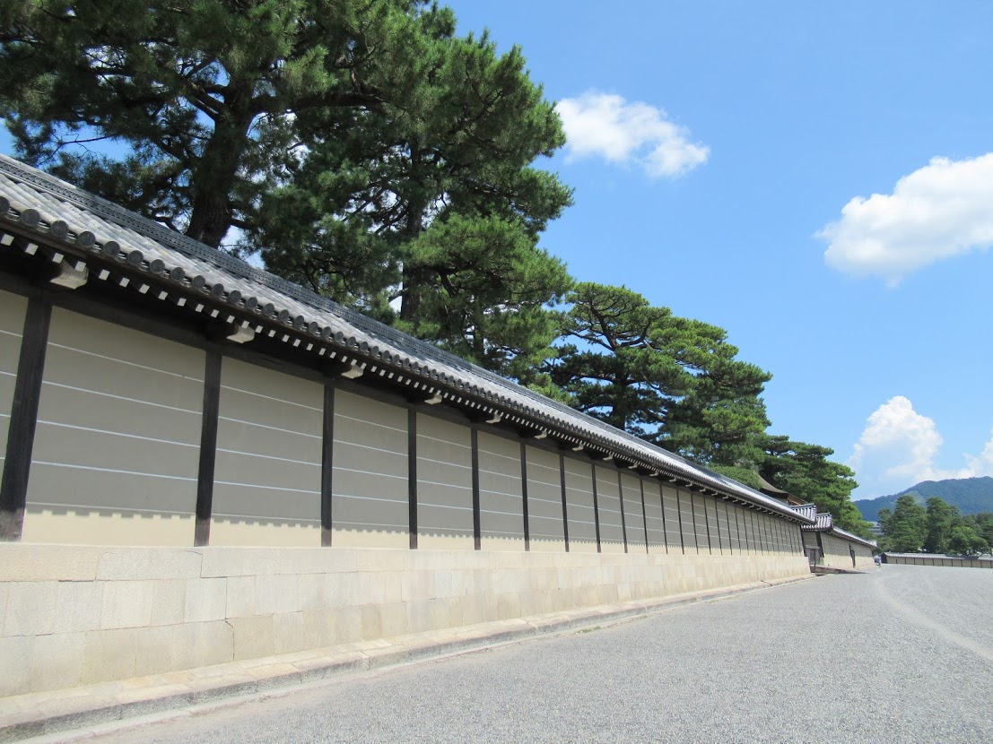 帰るまでにまだ時間があるので、御所に隣接している「京都迎賓館」へ。ながーい塀に沿って歩きます。日陰がなくて暑い暑い! |