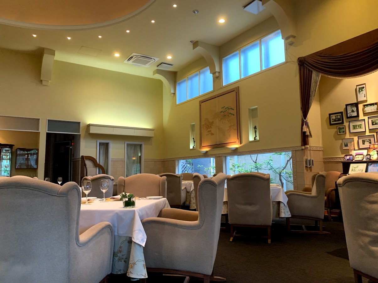 でも中に入るとグランメゾンらしい雰囲気。天井が高く、ピンとはった真っ白なテーブルクロス、サービスも良くて、名古屋を代表するグランメゾンです。 |