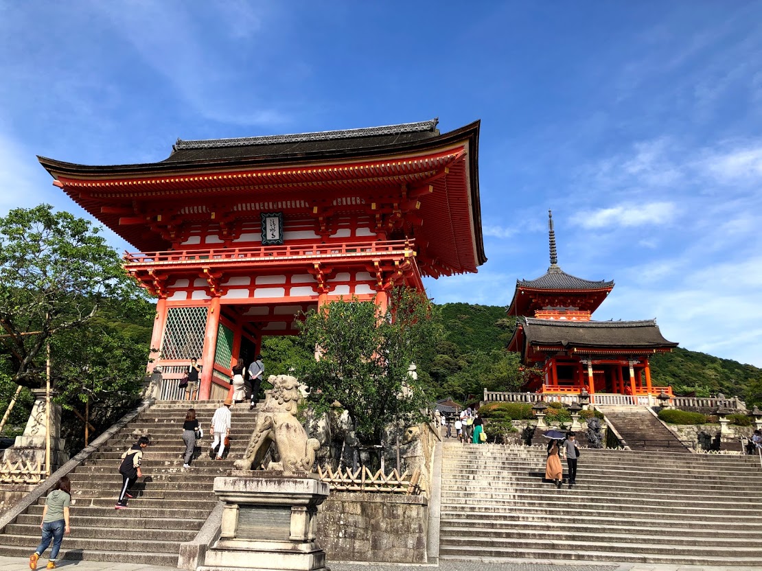 「清水寺」は修復が終わったばかり。 2008年から始まった修復で、舞台は真っ白になりました。少し覆いは残っていますが、2017年に修復は終わっているらしいです。 |