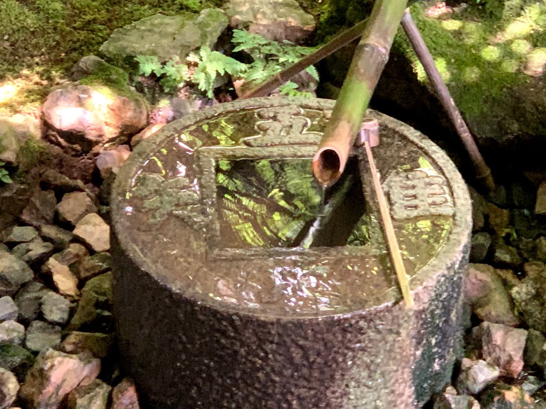 「知足のつくばい」。 徳川光圀(黄門さま)の寄進と言われています。本物は非公開の茶室にまり、こちらは複製です。 |