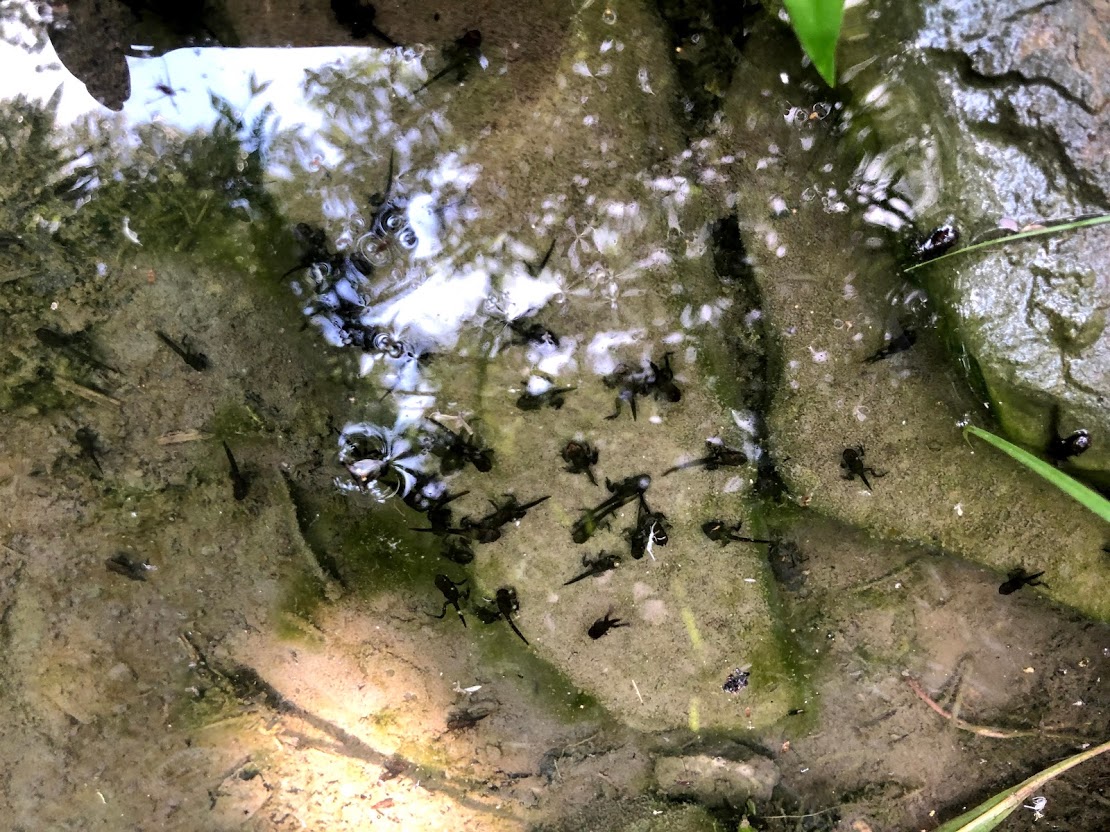 途中、水が湧いている所にはおたまじゃくしがいっぱい!うじゃうじゃ。 |
