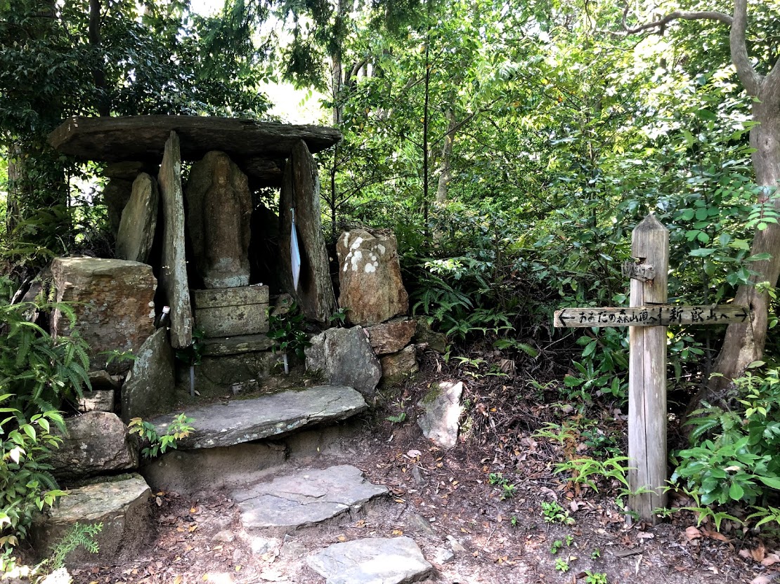 尾根沿いに「新嶽山」へ向かいます。ここの登山道はお地蔵様が案内してくれます。 |
