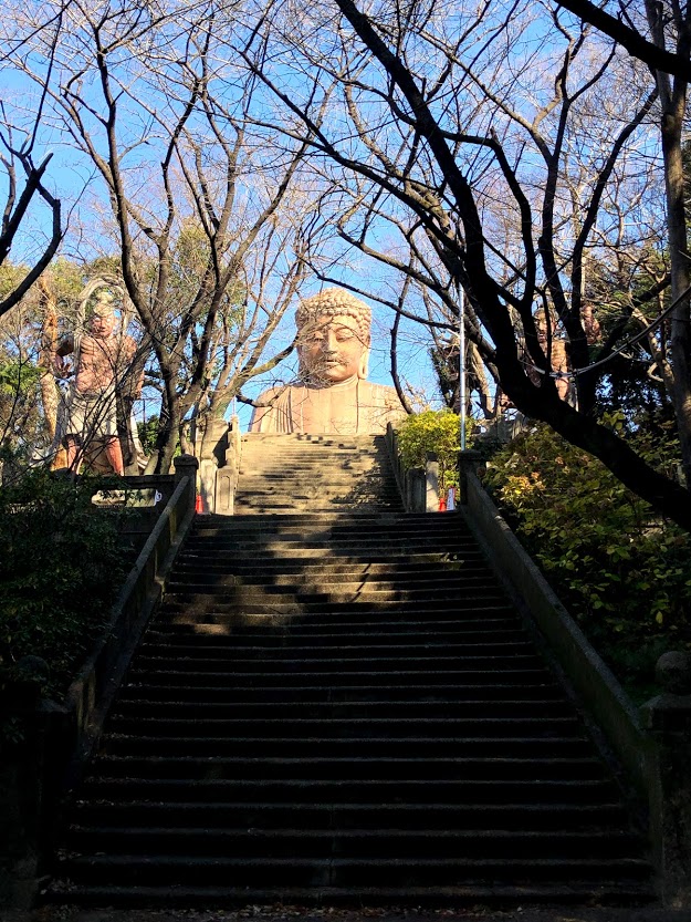 1927年、昭和天皇のご結婚を記念して開眼供養されました。 高さは18.79メートルあり、奈良や鎌倉の大仏より大きいです。 |