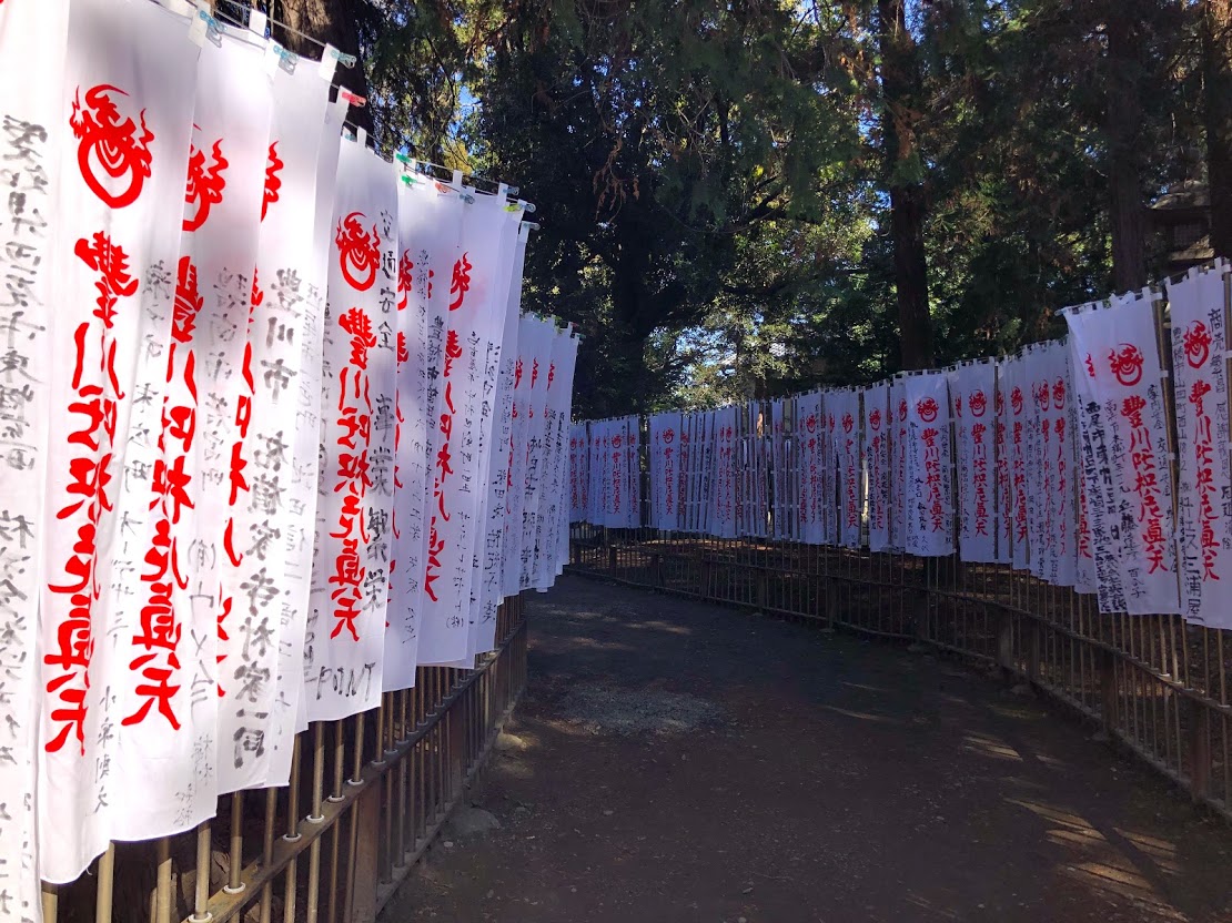ご本尊は子安観音です。のぼりが並んだ階段を上ってお参りしました。 |