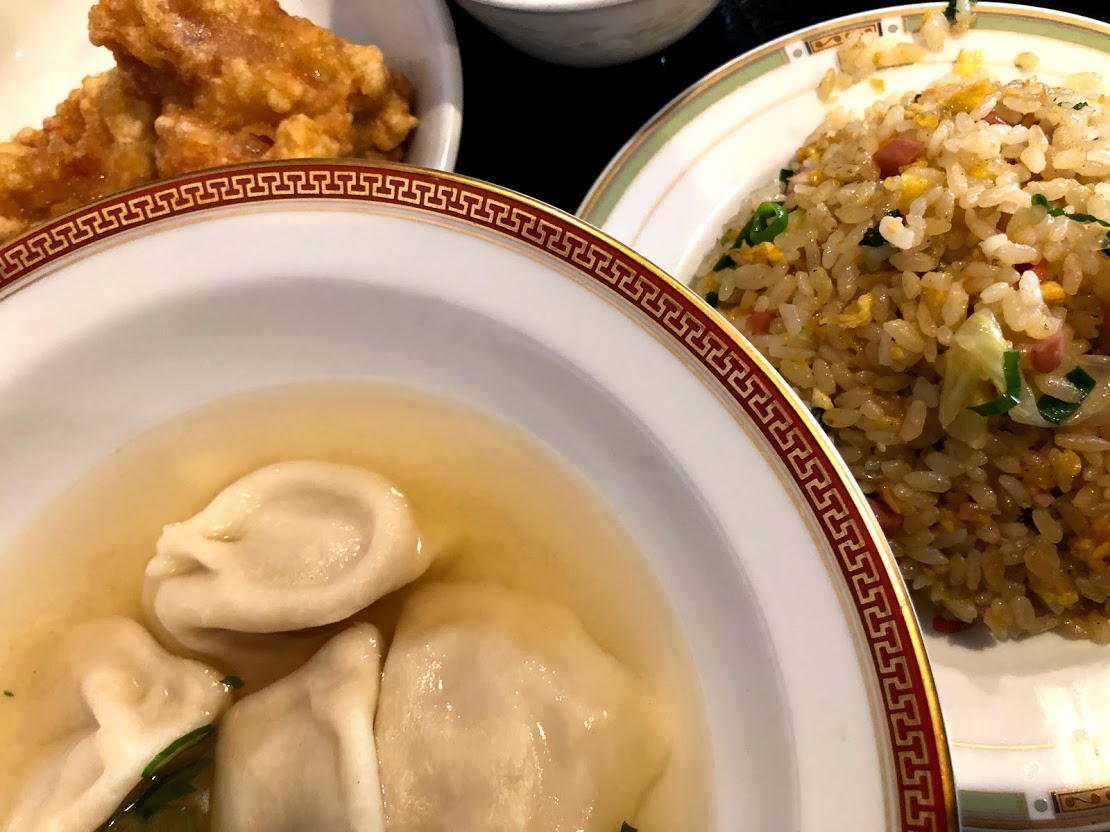 とりあえず座れるお店でランチをとることに。 唐揚げ、炒飯、水餃子のセット。安くて、そこそこおいしくて、満足できました。 |