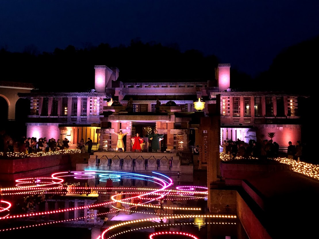 冬のイルミネーション「きらめき明治村」を見に「明治村」へ。 北口から入ると最初に見えるのは「帝国ホテル中央玄関」。アメリカの建築家フランク・ロイド・ライトによって設計され、大正12年(1923)4年間の大工事の後に完成しました。 |