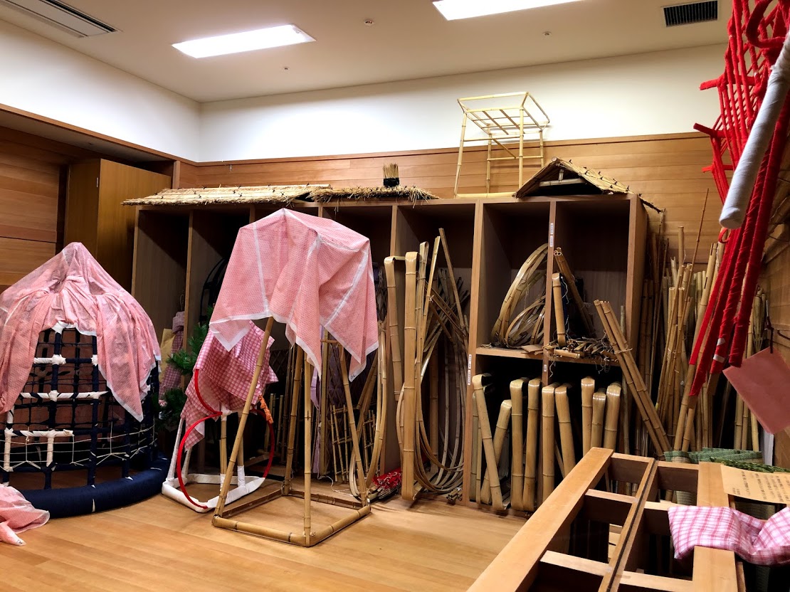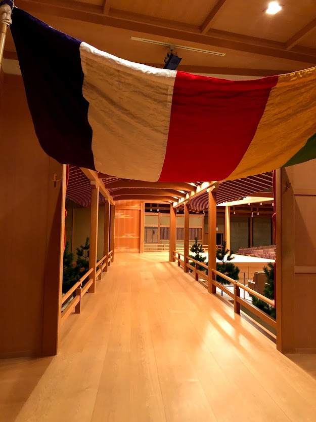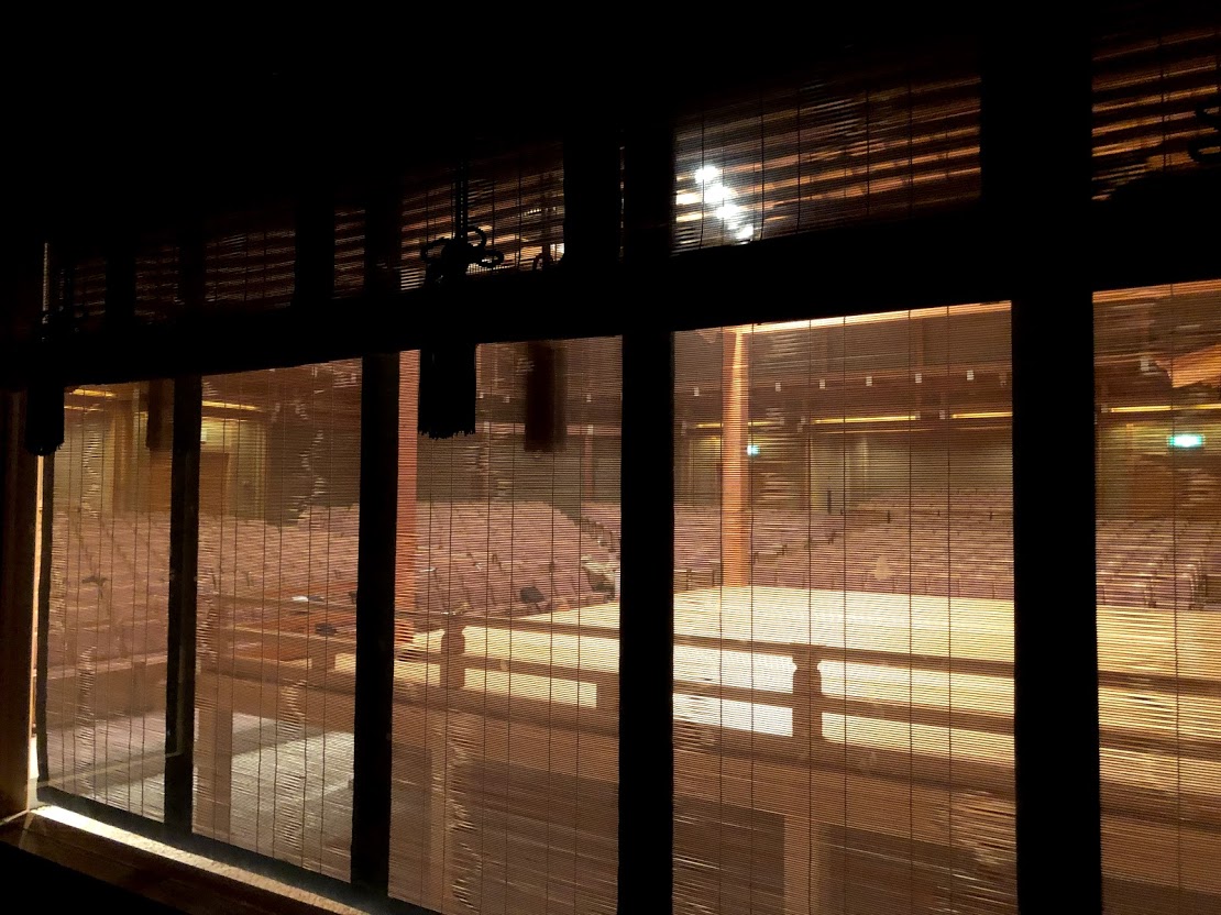「後座」 囃子方や後見が座るところです。舞台がよく見えるねー |