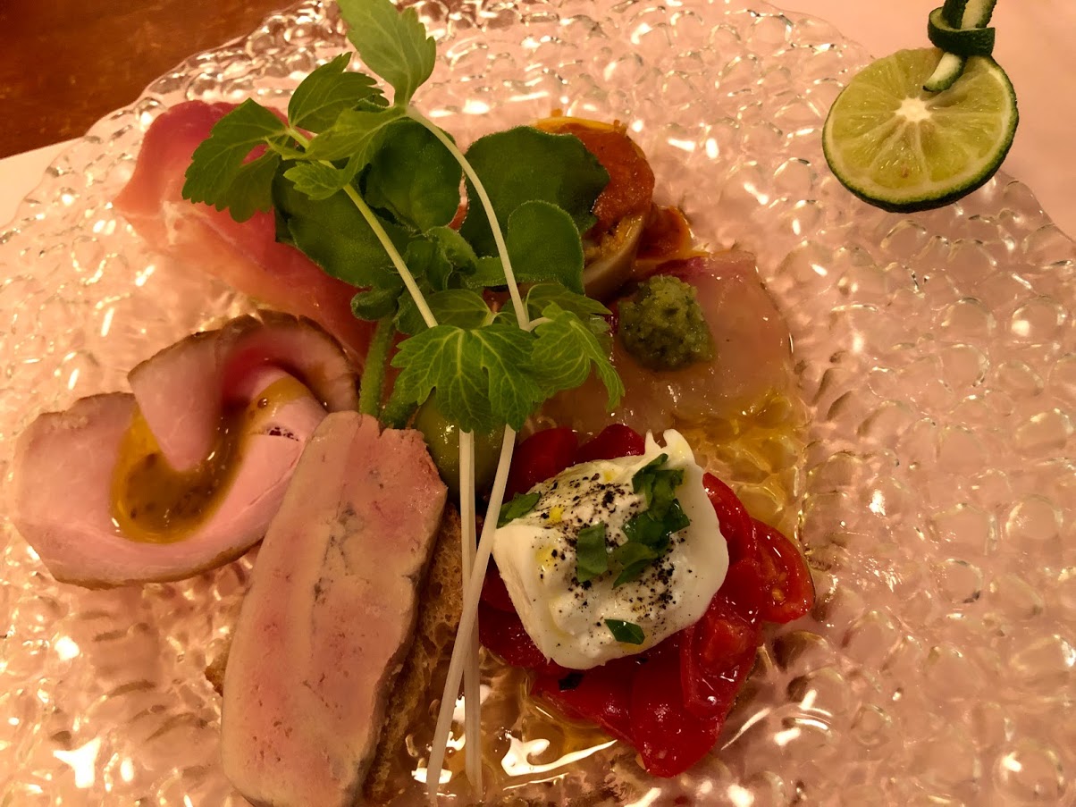 能見学会に行ったお友だちと別れて次のお友だちと人気のイタリアンレストランへ。 前菜は生ハムの盛り合わせ。 |