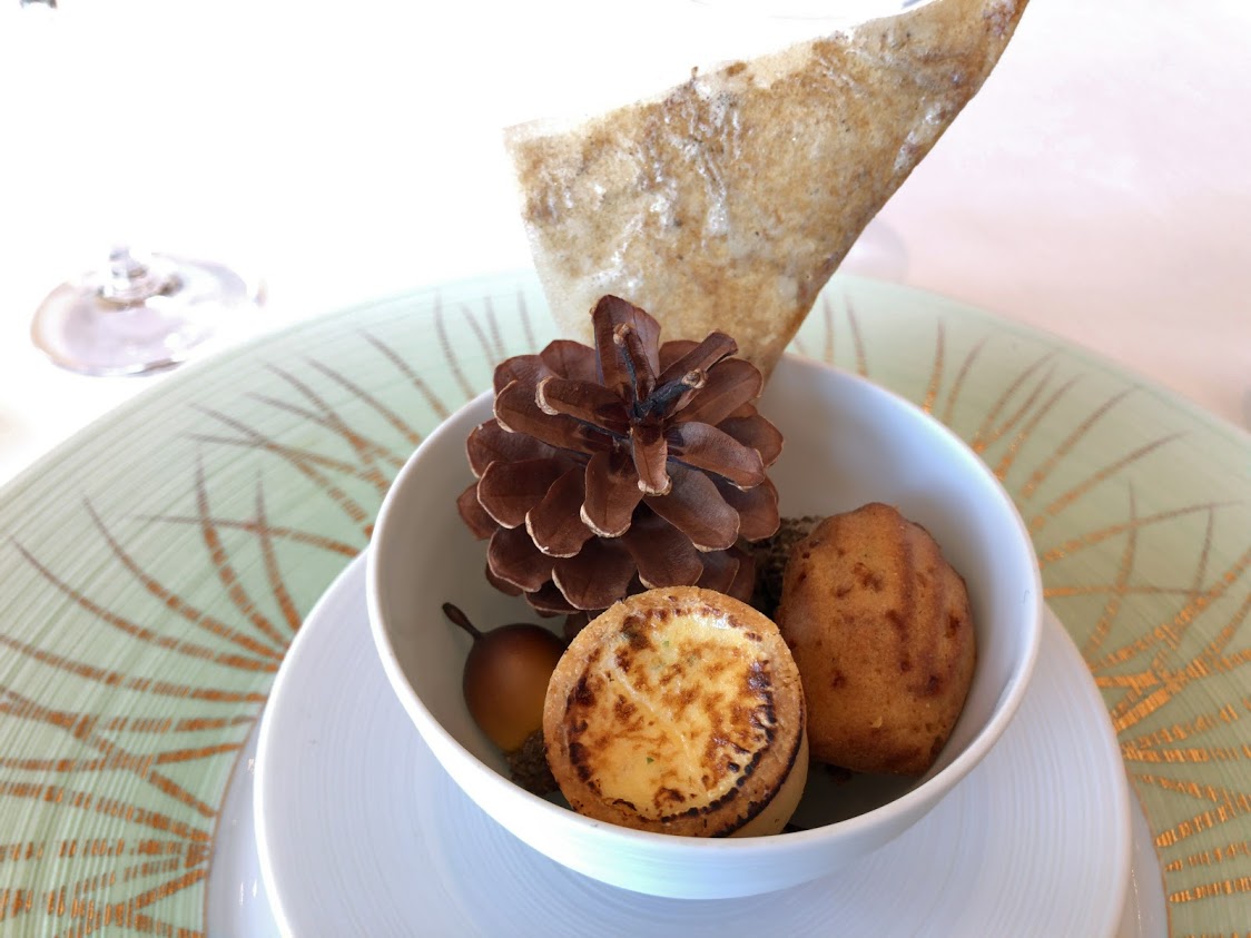アミューズ。 秋の食材のひと口サイズのパイ。 |