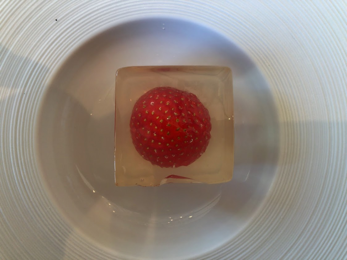 プレ・デザート。 いちごひとつ?って思ったら想像を超えるデザートでした。シンプルな見た目とは大違い。 |