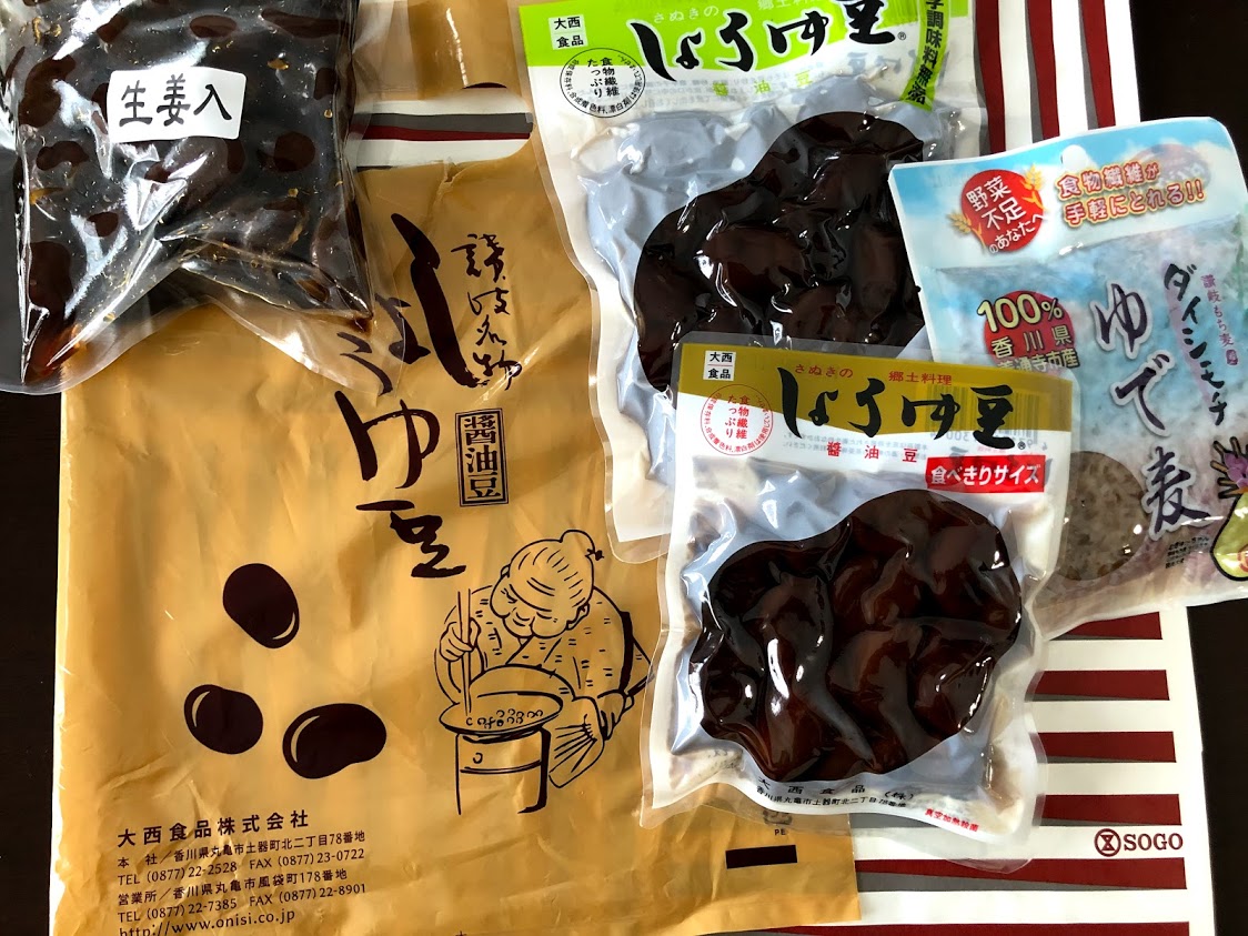「そごう」最後の物産展は「四国」でした。お友だちのおうちが出店していたのでそこでもお買い物。おみやげもたくさんいただきました。 「しょうゆ豆」。大好きな味です。 |
