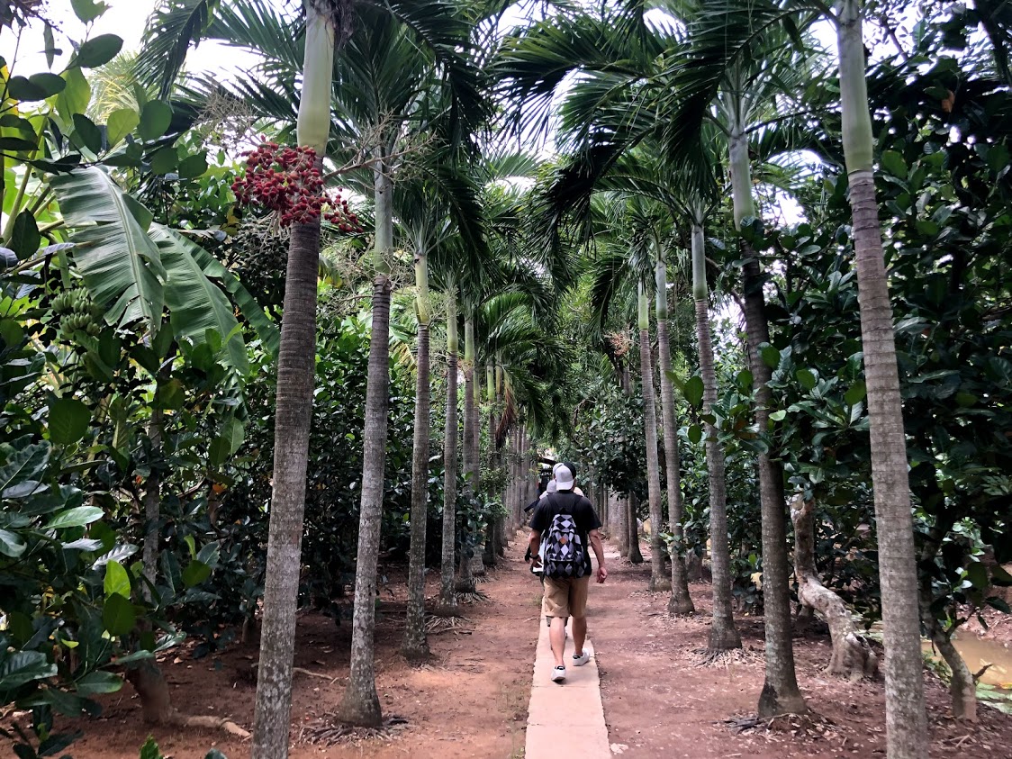 クルーズの途中にココナツキャンデー工場や養蜂所、果樹園に立ち寄りました。果樹園ではフルーツとお茶をいただきながら民族音楽を聴きました。 |