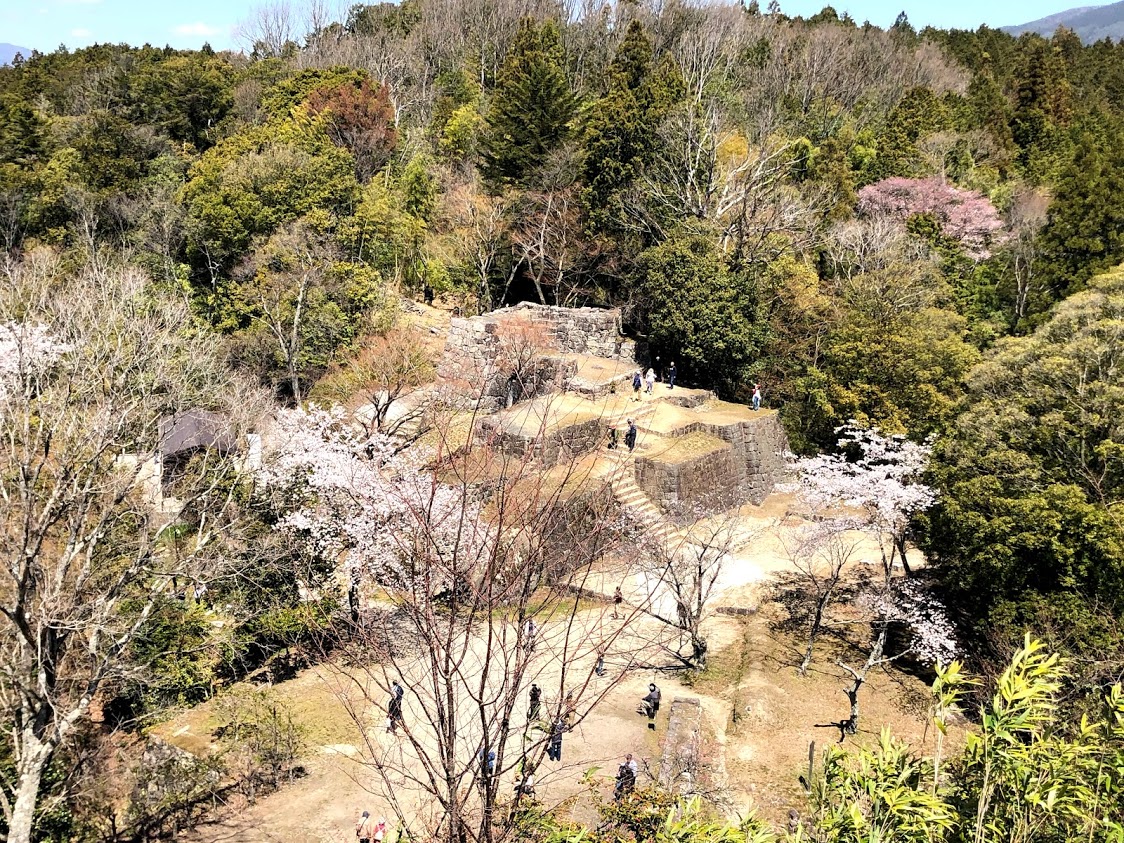 「苗木城」の展望台から見る「倉庫跡」。