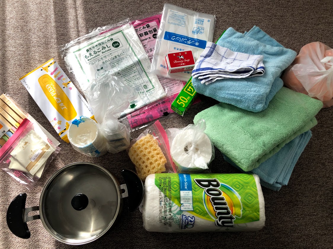 家に帰ったら扉に生活用品がかけてあったー。お友だちの差し入れ。 本当にありがとうございます。鍋がなければお湯も沸かせなかったよ。