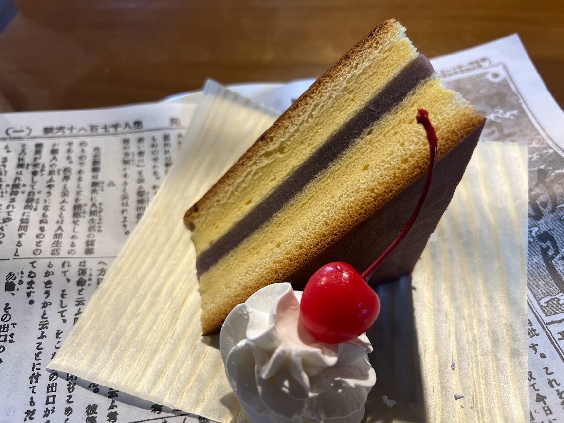「カフェ&ビアホール Re-BRICK」 復刻されたカブトビールが飲めるお店。半田の老舗和菓子店『松華堂』がつくった「シベリア」も食べられます。前日行ったジブリパークを思い出しながら。