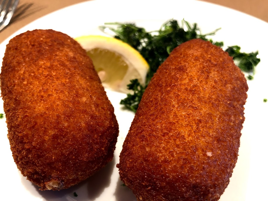 ベルギー料理の小エビのコロッケ。 北海産のエビで作るのが正解。 濃厚でおいしい。しかも大きいー!