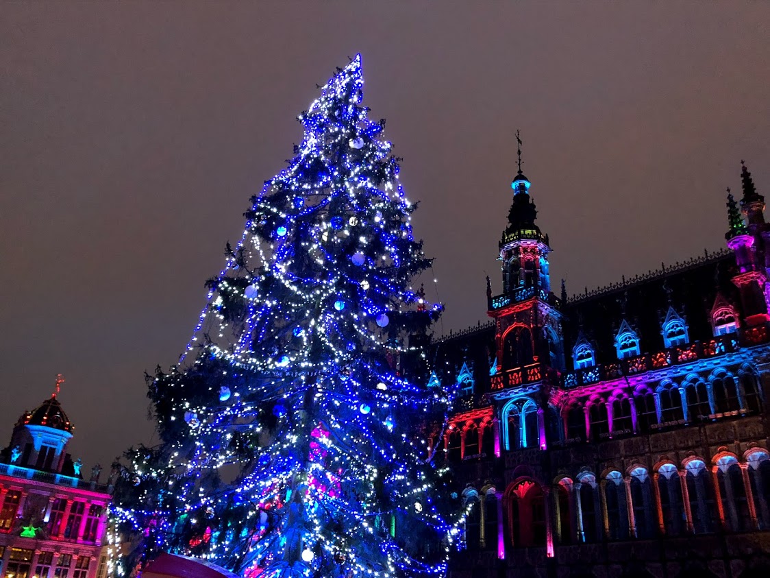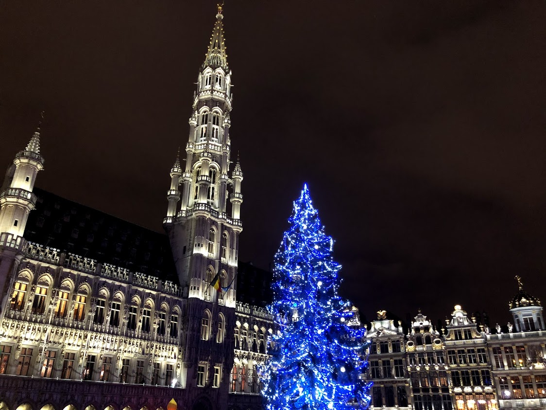 お友だちとミシュラン二つ星レストラン「シー・グリル」に行ってきました。レストランへ行く前に「グランプラス」のツリーと「クリスマス・マーケット」へ。