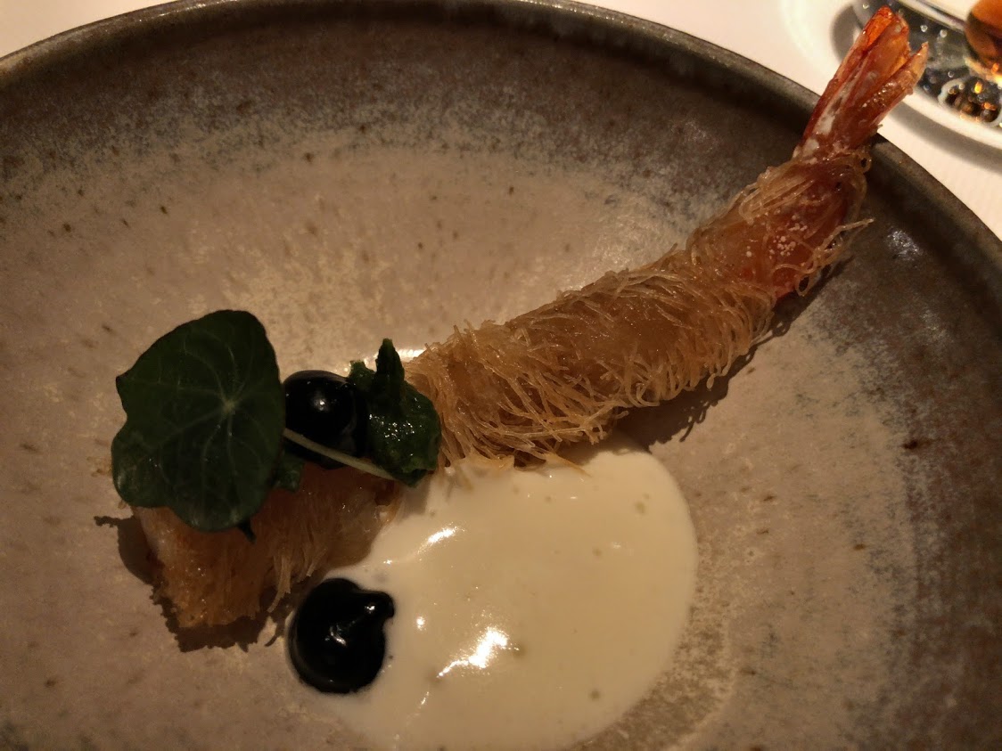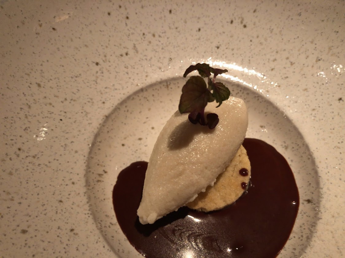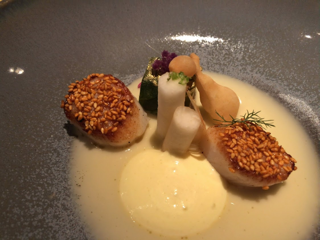 Scallop with sauces of scallop, pear and cheese. It has a nice smell of sesami as well. |