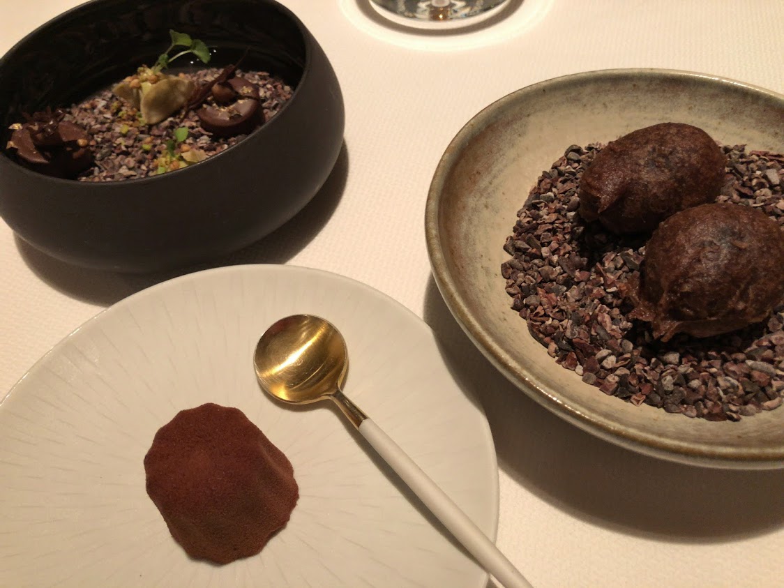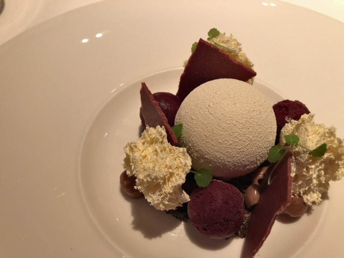 デザート。 丸いホワイトチョコレートを割って食べます。