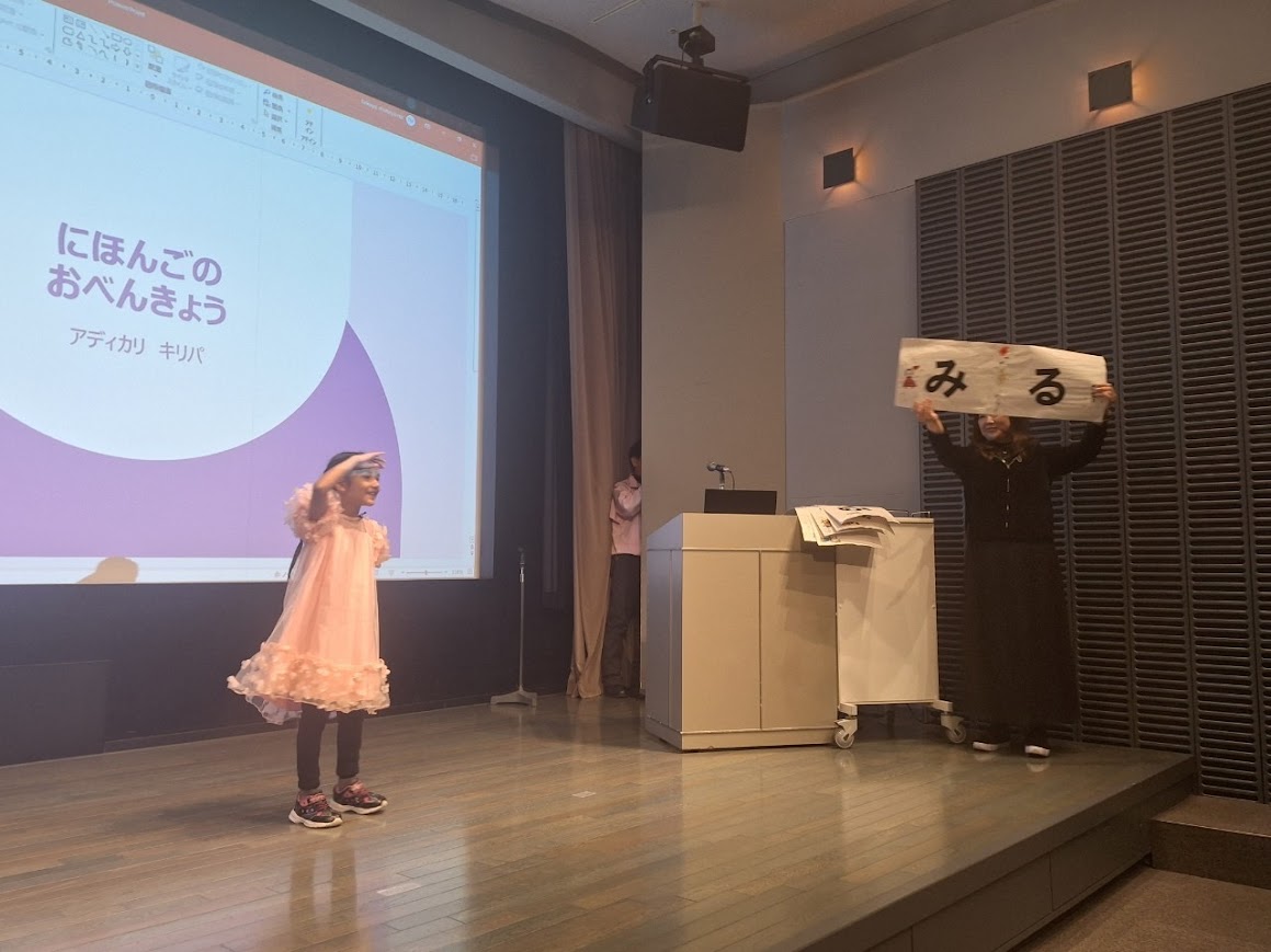 小学生の発表。まだに日本にきて1年経っていません。練習、がんばりました。見事、賞を獲得! |