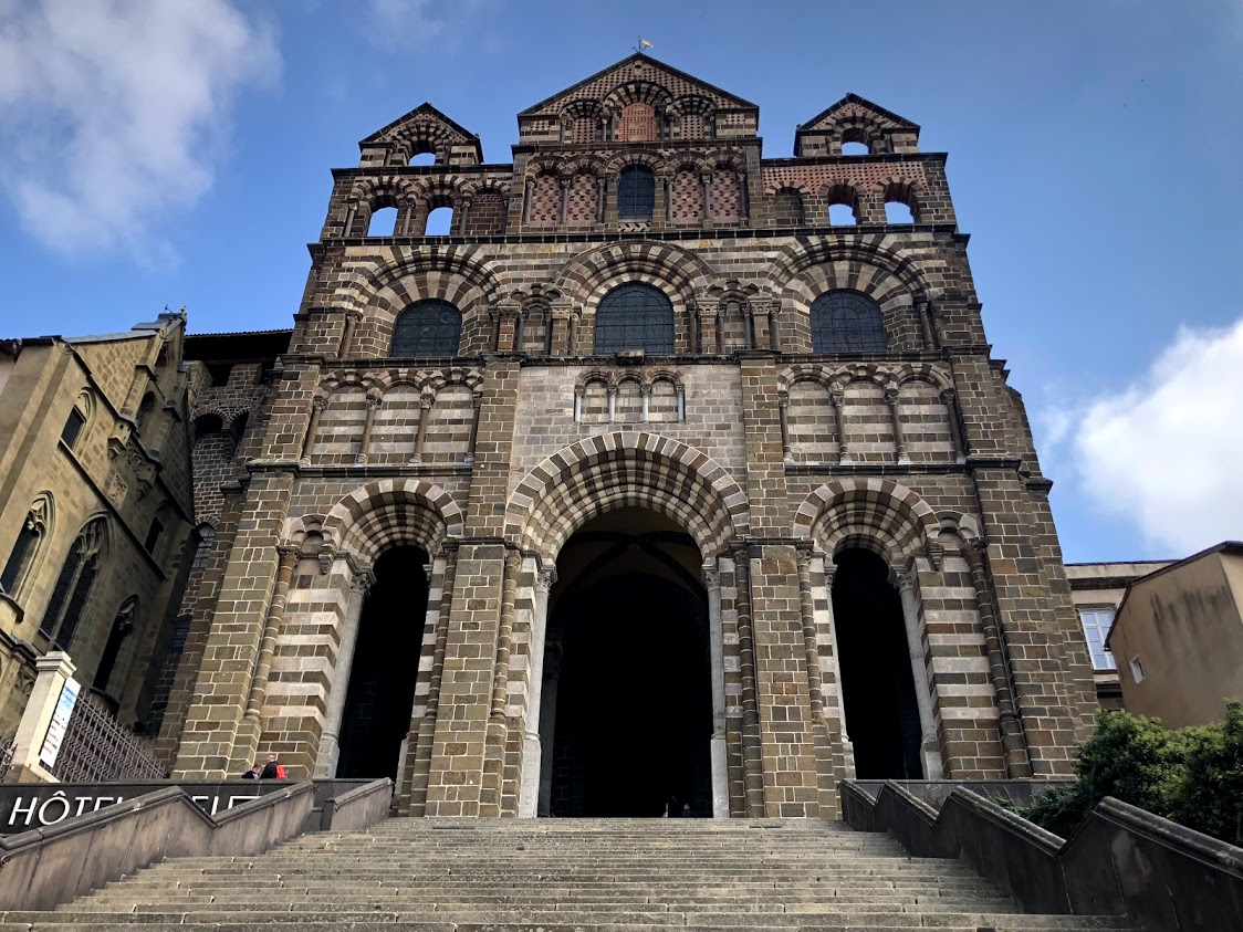 「フランスのサンティアゴ・デ・コンポステーラの巡礼路」の一部として世界遺産に登録されている大聖堂がある町を訪ねました。火山地帯なので街中に隆起した岩山が多く見られ、この大聖堂も岩山の上に建てられています。