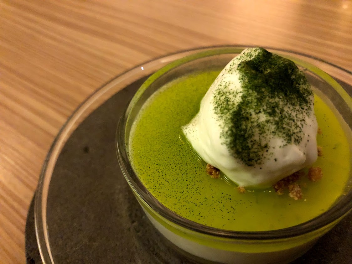 Amuse-bouche. A light on the table was the one burning with a flame, not a candle. When we see such alight in Japan, we usually put a small pot on it. |