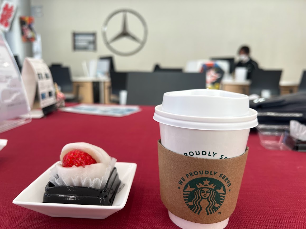 今年も新年早々車の点検。ヤナセのお菓子はいちご大福。 |