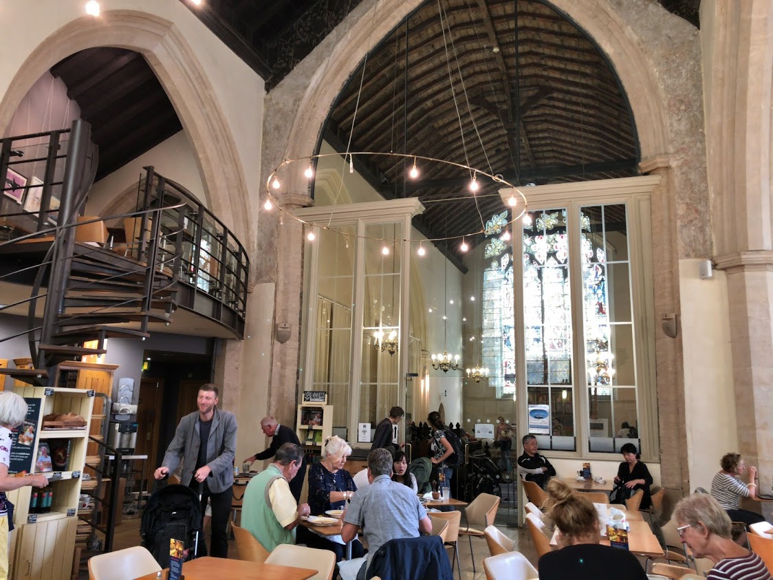 Substantially refurbished in 2001-2002, the church now bears the College's old name, Michaelhouse Centre, Cambridge. It serves as a lively weekday church, community centre, art gallery and a cafe. Therefore we can have a tea in the church. |