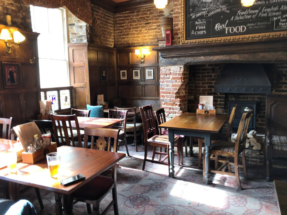 1667年に「イーグル・アンド。チャイルド」として創業、ケンブリッジでいちばん古いと言われている老舗パブへランチに。