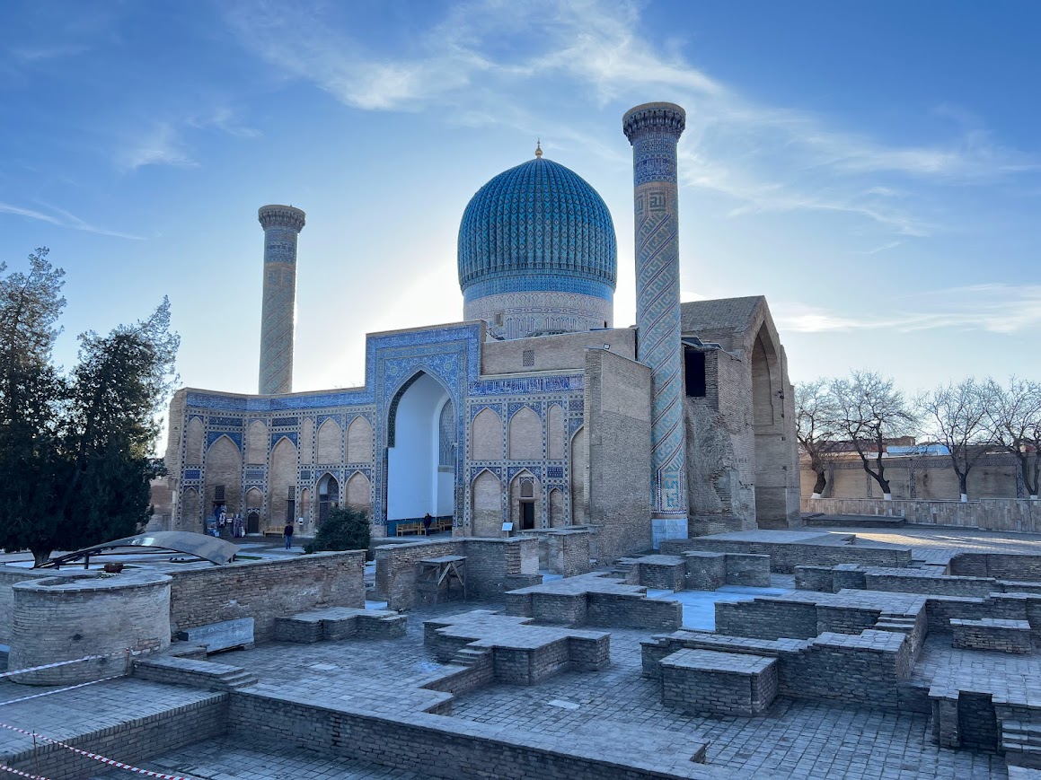 小高い丘の上に建っているのでサマルカンドの街を見渡せます。「ビビハニム・モスク」も見えます。 |