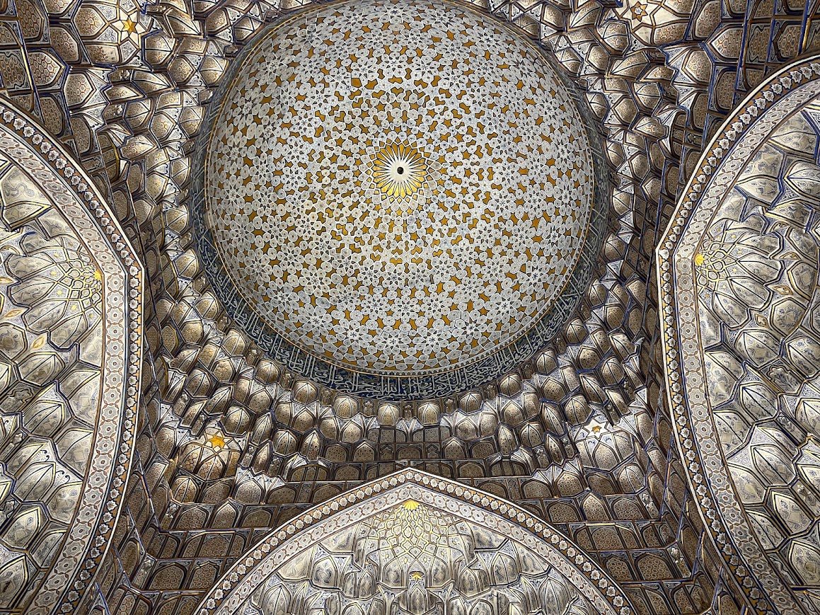 青い大きなドームも美しい。モスクのドームは天国に、アーチは天の川に例えられていたそうです。 |