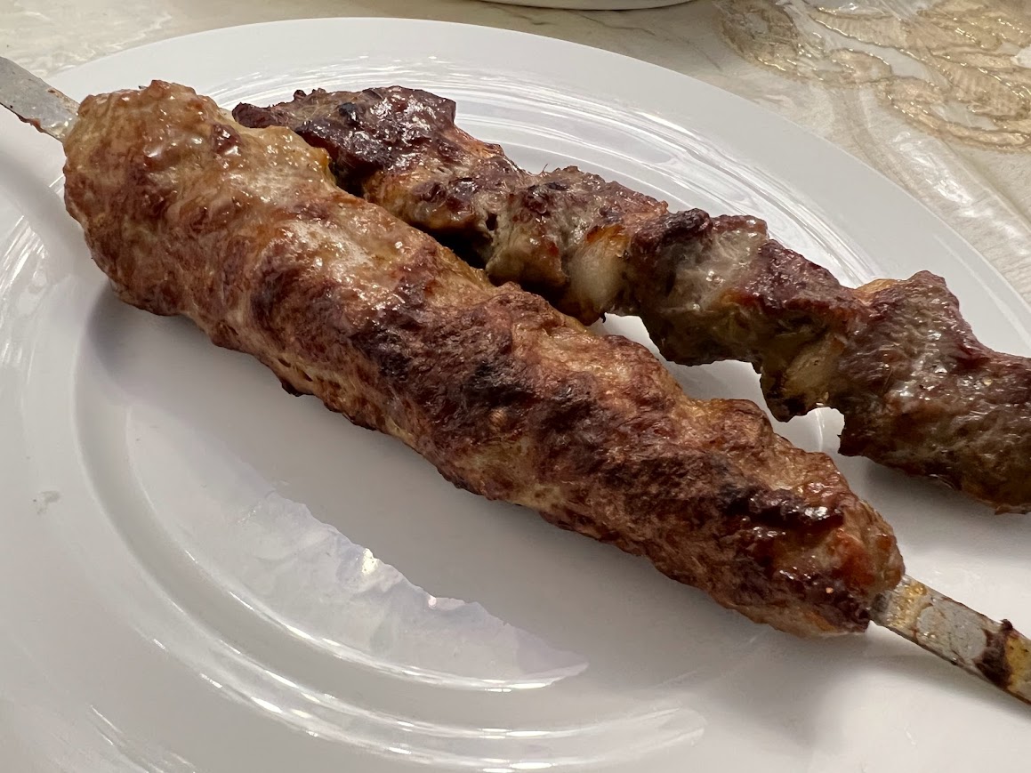 ウズベキスタンのファストフード。串焼きです。意外に柔らかくておいしかった。 |