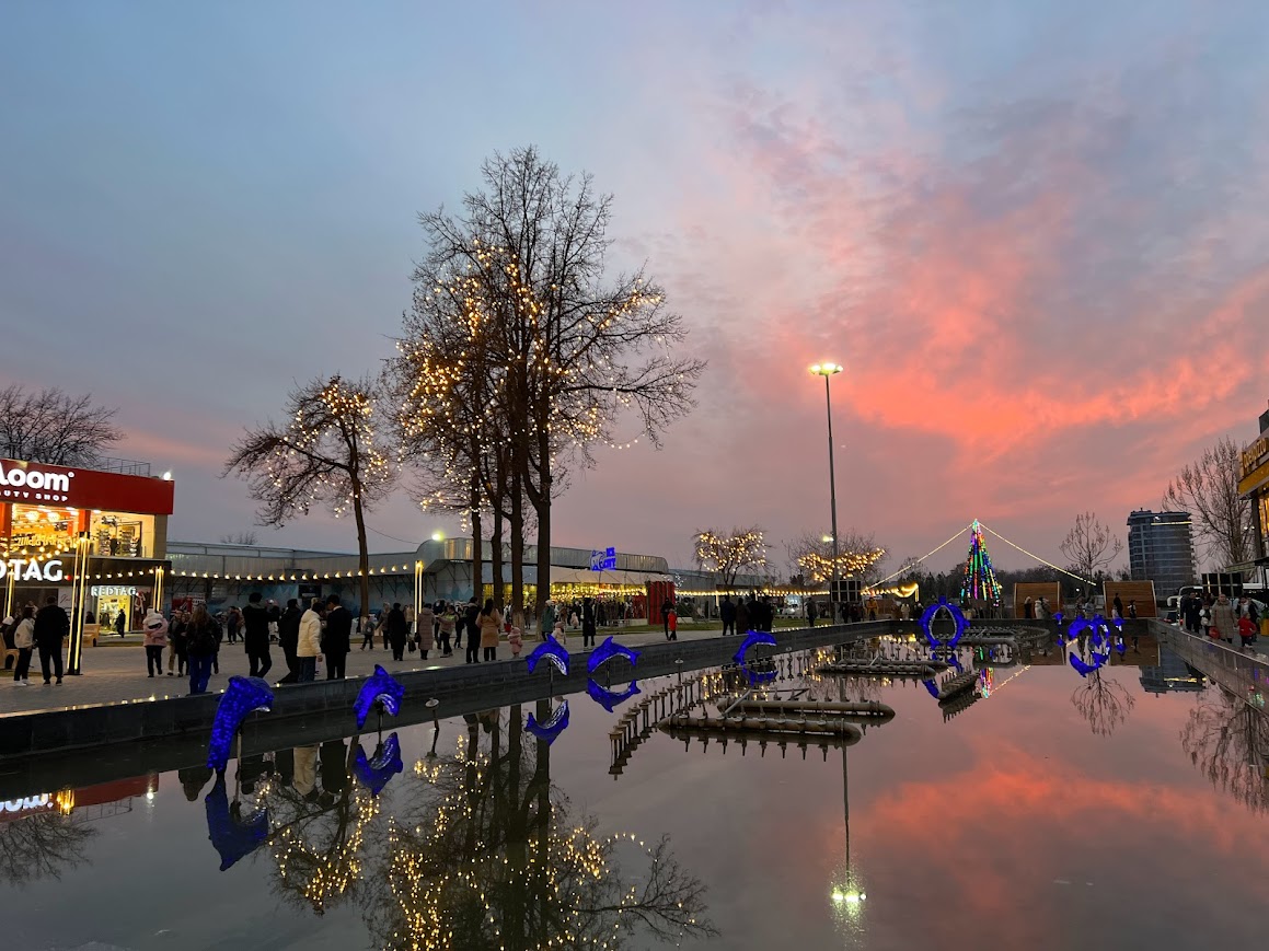 広場は営業時間が終了していたのにたくさんの人が働いていて、夜ドローンショーををすると言うことでした。何時から?って聞くと、7時っていう人と6時半という人といて、結局何時かわからず。どこにもポスターやチラシもなくて、確認できず。ともかくドローンショーがあるのは確実のようなので、見にくることにしました。 |
