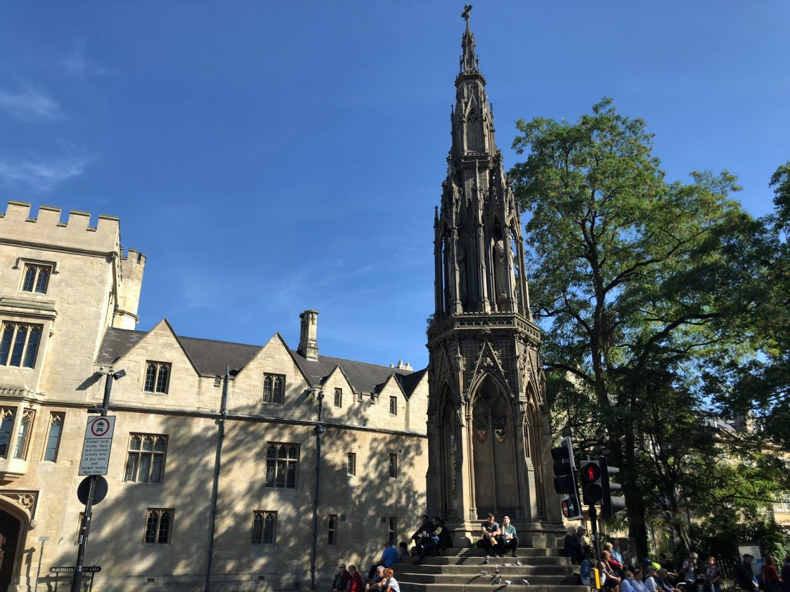 この塔です。16世紀のオックスフォード殉教の慰霊碑です。モニュメントは1843年に完成し、20世紀の間は荒廃していましたが2003年に全面修理されました。この塔の横にある…