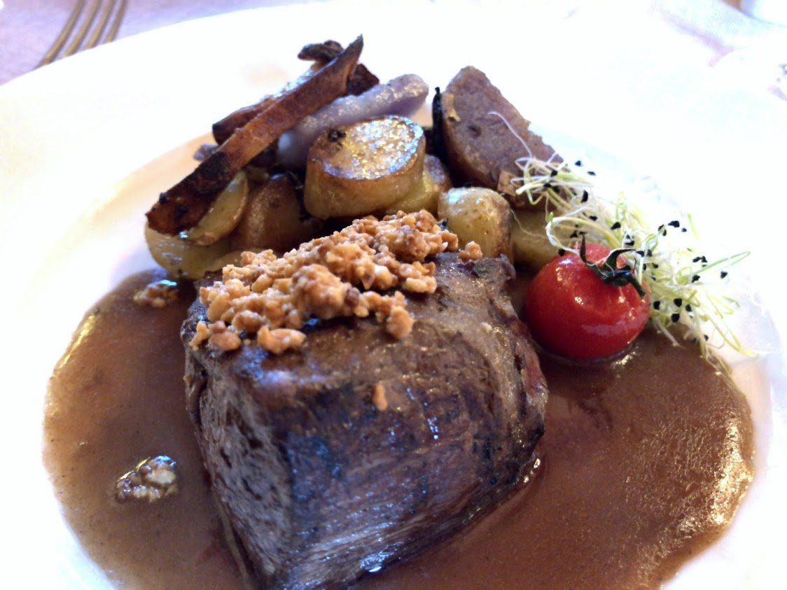 行き当たりばったりでお店に。この地方のお料理「フィセル・ピカルド」をいただきました。そば粉のガレットでハムやらスモークサーモン、マッシュルームなどをくるみ、ホワイトソースとチーズをかけてオーブンで焼いた物。おいしいです。
