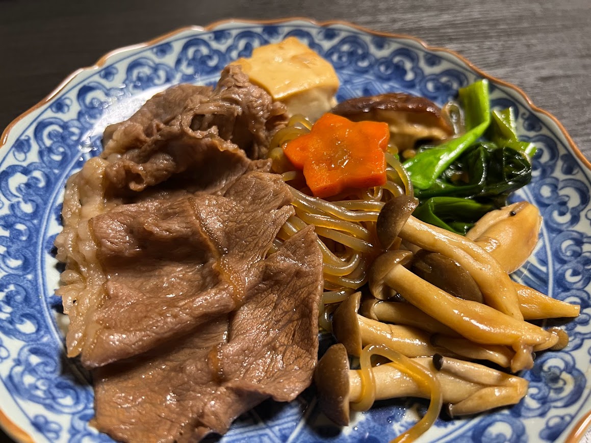 旅館の一部屋に私たち二人だけ。贅沢な時間です。すき焼きは仲居さんが焼いてくれます。 |